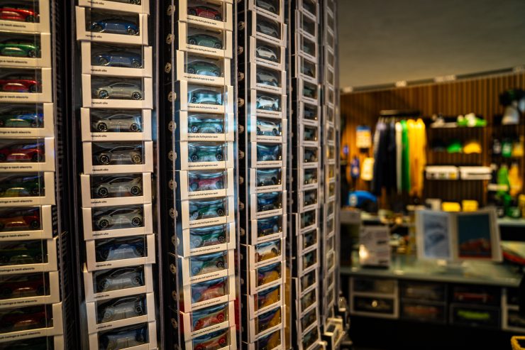 Das architektonische Rückgrat bildet eine rund 170 Meter lange, spiralförmig angelegte Rampe, die sich durch das Gebäude zieht. Sie funktioniert als Bühne und Leitlinie zugleich. Entlang dieser Achse werden Fahrzeuge präsentiert, nicht statisch nebeneinander gereiht, sondern eingebettet in wechselnde Perspektiven, Lichtstimmungen und Blickachsen. Der Begriff „Carwalk“ ist dabei keine Spielerei, sondern Konzept: eine Übertragung des Laufstegs auf das Automobil.